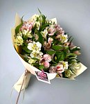 Доставка с поздравлением. Наш курьер торжественно вручит букет от вашего имени и зачтет ваше поздравление. Пожалуйста, уточните стоимость этой услуги у менеджера по телефону.
